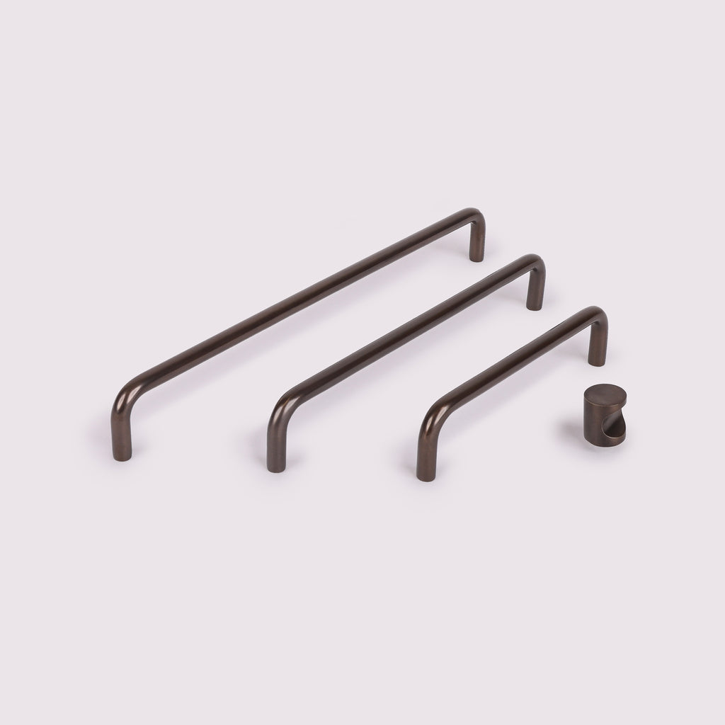 Made of solid brass and finished in an organic Antique Bronze that is designed to age and patina over time, this range has a knob, three handle lengths, three lip pull lengths and an over sized 396mm integrated appliance pull. In addition to Antique Bronze other finishes available are Acid Washed Brass, English Bronze, Burnished Brass and White.