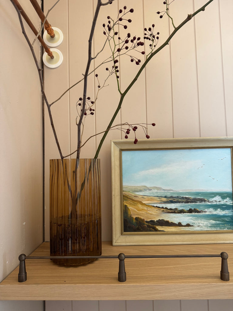 Designed off the shape of the South West Rocks lighthouse on Australia’s east coast, these gallery rails are designed to be installed on top of a shelf to stop items sliding off it. Made of solid brass, these gallery rails are able to be adjusted to any length shelf for a custom fit.